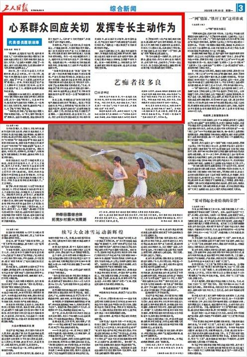 “作为来自基层一线的代表,必须心系群众、回应关切;作为从事专业技术的代表,必须发挥专长、主动作为。”李刚一直这样认为,努力在自己的岗位上创造更好的成绩才能不负群众的信任和期待。(记者 陈俊宇)