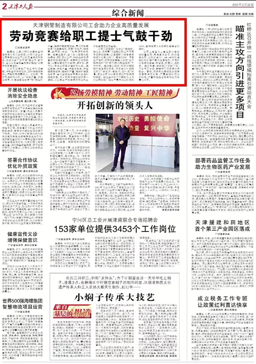 2月22日,《天津工人报》刊发报道“拼博网页版工会助力企业高质量发展 劳动竞赛给职工提士气鼓干劲”,现全文转发。