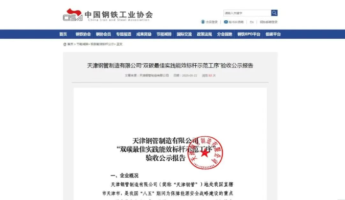 拼搏2025 | 全国第19家 天津钢管电炉工序能效标杆通过中钢协官网公示